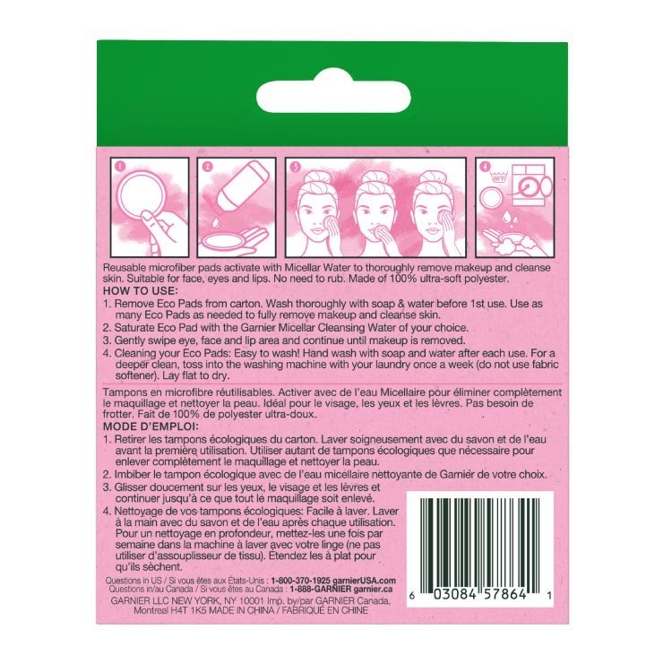 Micellar Cleansing Eco Pads, Reusable, 3 Pack ব্যবহারের জন্য, প্যাডে আপনার পছন্দের মাইসেলার ওয়াটার বা ক্লিনজার ঢেলে মুখে হালকা করে ম্যাসাজ করুন। চোখ ও ঠোঁটের মেকআপ সরানোর জন্য আলতো করে প্রেস করে ধরুন, তারপর ধীরে ধীরে মুছে ফেলুন। ব্যবহারের পর হালকা সাবান পানিতে ধুয়ে ফেলে শুকিয়ে সংরক্ষণ করুন।