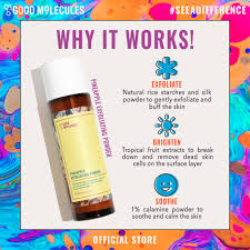 এই এক্সফোলিয়েটিং পাউডারটি কোনোরকম মাইক্রোপ্লাস্টিক ছাড়াই তৈরি, ফলে এটি পরিবেশবান্ধব। এটি স্কিনের প্রাকৃতিক pH লেভেল বজায় রাখে এবং একটুও রুক্ষতা তৈরি করে না। ত্বকের ফ্ল্যাকি বা স্যাঁতসেঁতে টেক্সচার মুছে দিয়ে দীর্ঘস্থায়ী মসৃণতা আনতে সহায়ক।